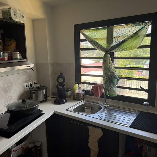 Situé dans le quartier calme et recherché de La Bretagne, ce T2 récent d'une surface de 46,26 m2 avec varangue de 8,88 m2 se trouve au 1er étage d'une résidence moderne et intimiste de 12 logements. Il offre un cadre de vie agréable, proche des commodités et des principaux axes. L'appartement comprend un séjour lumineux ouvert sur une belle varangue, parfait pour profiter du climat réunionnais. La cuisine ouverte, équipée d'une plaque de cuisson et d'une hotte, permet une installation simple et fonctionnelle. La chambre, dotée d'un brasseur ...