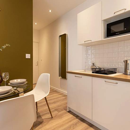 Cet appartement de type 2, récemment rénové et équipé, vous propose un espace de vie fonctionnel. une cuisine entièrement équipée et aménagée ouverte sur un coin salon/salle à manger, une salle de bain équipée d'une douche à l'italienne, et une chambre avec rangements offrant un lit double confortable. La résidence met à disposition une laverie avec machine à laver et un sèche-linge pour votre confort. Vous pourrez également profiter de la cour intérieure pour vous détendre en plein air. Idéalement situé à moins de deux minutes à pied du cen...