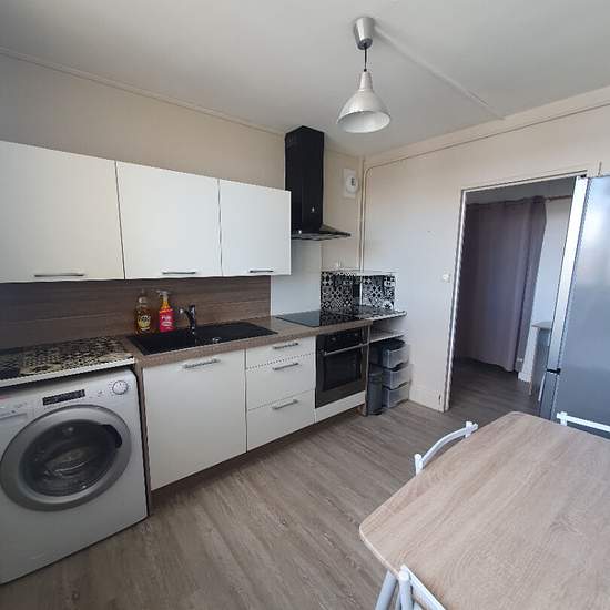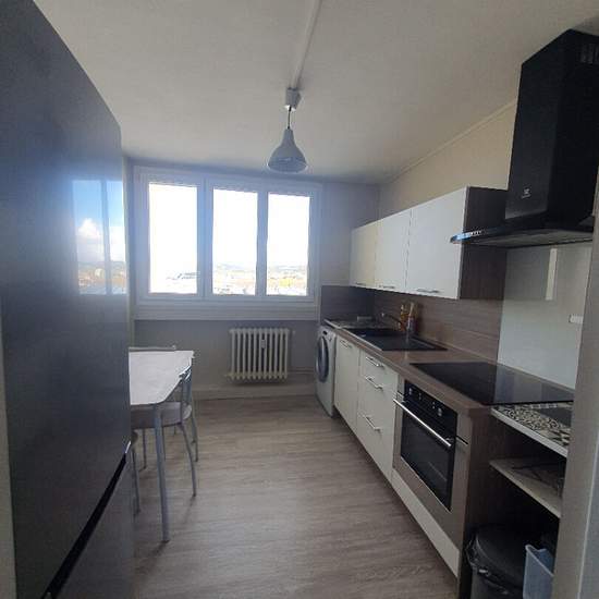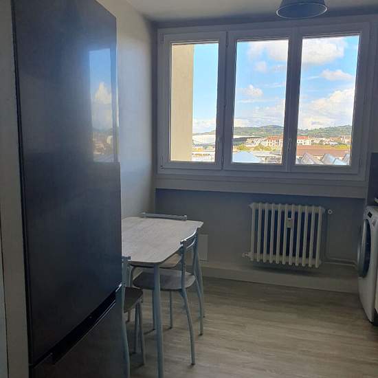 ST ETIENNE BERGSON-34 RUE BERGSON emplacement idéal tram et commerces au pied de l'immeuble-T2 entièrement meublé de 41m² avec balcon-8ème étage d'une copropriété calme et sécurisé-Séjour avec canapé, grand bureau, balcon-Une cuisine séparée entièrement équipée (plaques, four, machine à laver, lave vaisselle, table, chaises, vaisselle...)-Une chambre avec dressing-Salle d'eau avec douche et WC-Nombreux rangements-Double vitrage PVC-Stationnement possible en bas de l'immeuble -Cave-LOYER 480 euros + 110 euros de charges (chauffage, eau chaude...