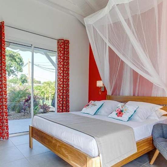 L'hôtel **** avec piscine à Saint-François en Guadeloupe vous propose un séjour de rêve dans une chambre Romantique. raffinée, lumineuse, aérée et entièrement équipée qui laissera place à la détente. Des matières naturelles telles que le bois, le rotin et le bambou vous permettront de vous déconnecter et vous plongeront dans un univers authentique. Un lit d'appoint peut être ajouté sur demande (enfant de moins de 13 ans), ou un lit bébé. L'hôtel a pensé à l'accueil des personnes à mobilité réduite, n’hésitez pas à vous renseigner ! Chambre R...