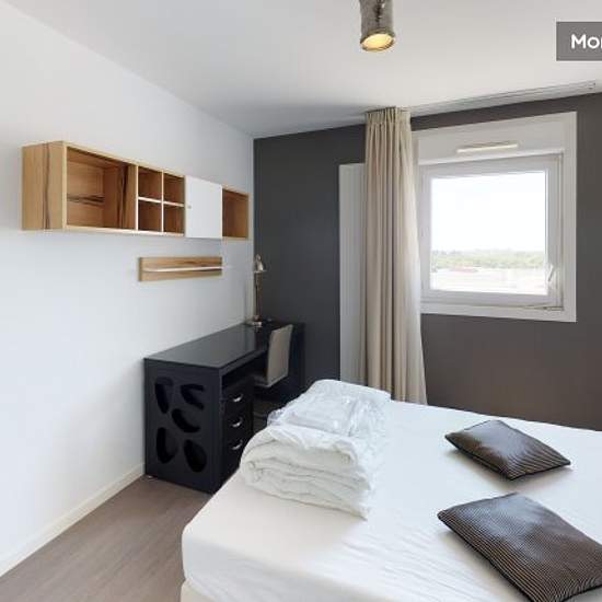 This flat is located in a secure residence just off the St Herblain tramway, next to the Pigier school. A residence manager and a security guard will be on hand for your peace of mind. Magnificent design. The flat is very well maintained and modern. Comprising a living room with open-plan kitchen, sofa bed (120cm), desk and bedroom with double bed (140cm), this T2 apartment sleeps 4 people. The kitchen is fully equipped with all utensils. A bathroom with shower is adjacent to the bedroom. The flat has free Wi-Fi access. Bed linen is provided...