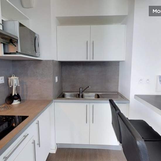 This accommodation is only available for rent for students. This apartment is located in a secure residence located on arrival of the tram from St Herblain, glued to school Pigier. A charge of residence and a security officer will be there on-site for your peace of mind. It is an apartment T2Bis: there is a kitchen and you have your own stay (living room + dining room) space with a bedroom and a bathroom. The room is equipped with a desk and a bed of 140 cm. The kitchen is equipped with all the utensils. A bathroom with a shower is adjacent...