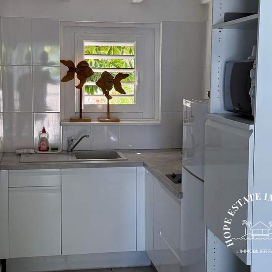 Dans résidence de vacances, bien entretenue vous trouverez à votre disposition, 4 appartements T2 pour 4 personnes maximum, tous bénéficiant d'une vue panoramique sur la baie d'Oyster Pond, et articulés autour d'une agréable piscine avec transats, tables et chaises afin de profiter d'un agréable moment au coucher du soleiL Ces appartements bénéficient de tout le confort, avec climatisation, cuisine aménagée et équipée, salon séjour, avec un canapé deux places, salle d'eau et wc- à l'étage lit en 160 Une terrasse agréable et privative complèt...