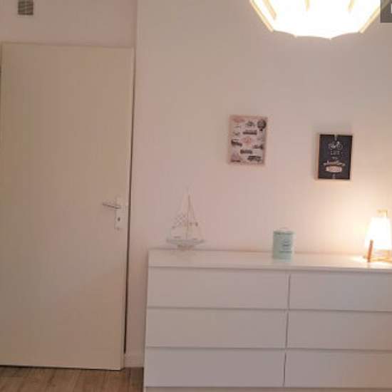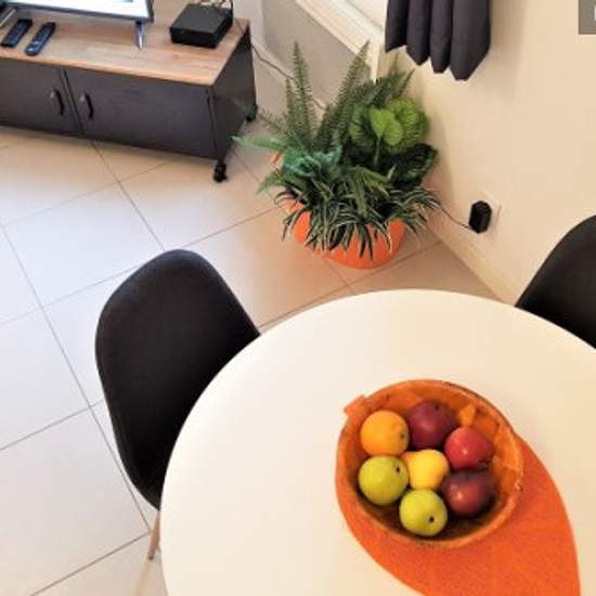 T2 pour 4 avec grand salon : - canapé lit neuf (été 2018) avec matelas transformable en lit 2 places, TV par internet (nombreuses chaînes), placard et rangement ainsi que penderie (avec cintres) - salle de bain rénovée fin 2017 avec douche, WC, sèche-cheveux, fer et planche à repasser avec étendage - cuisine toute équipée : cafetière Dolce Gusto (capsule non fournie), frigo/congélateur SMEG, micro-onde, bouilloire, plaque de cuisson à induction, grille pain, ménagère complète. Toutes les fenêtres sont équipées de volets. Vous avez accès à to...