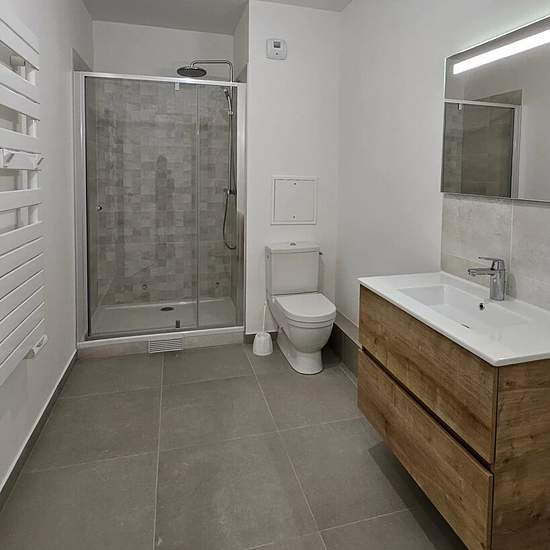 Dans une très belle résidence neuve de standing avec gardien et proposant des services innovants tels que des boites à colis connectées, nous vous proposons à la location ce studio Neuf. Situé en Rez-de-Jardin, cet appartement de 53,10 m² se compose : d'une entrée avec placard, un séjour spacieux avec placard et d'une cuisine aménagée et semi-équipée (plaques de cuisson à induction et hotte), d'une chambre avec placard, d’une salle d'eau moderne équipée d'un sèche-serviette et d’un WC. Une terrasse et un Jardin d’environ 26 m² pour profiter ...