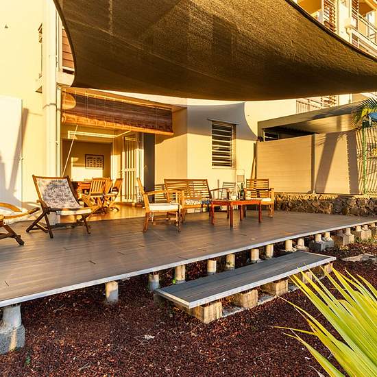 MON AGENCE IMMOBILIÈRE vous propose à la location ce charmant T2 "coup de coeur", entièrement meublé, idéalement situé et bénéficiant d'une superbe surface extérieure avec une vue imprenable sur le lagon. D'une superficie de 50 m², cet appartement se compose d'un spacieux séjour attenant à une cuisine équipée et meublée, communiquant avec une varangue d'environ 15 m², elle-même prolongée par une terrasse couverte d'environ 30 m² et un jardin. Côté nuit, vous trouverez une chambre climatisée avec rangements, attenante à une salle de bains ave...