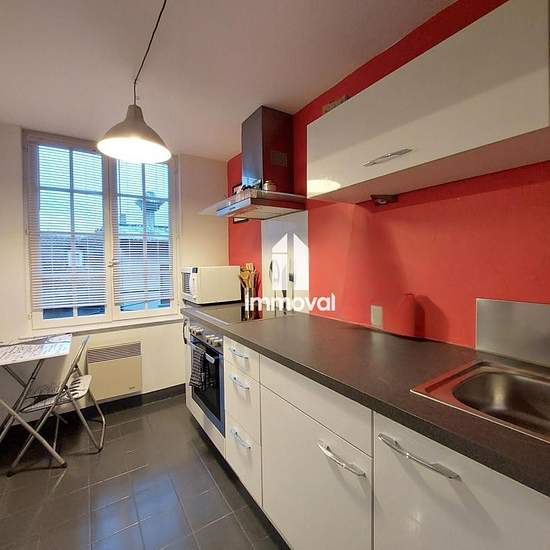 IMMOVAL vous propose : rue du Bouclier, un charmant 2 pces meublé de 51.27m² au 3e étage sans ascenseur. Il se compose d'une entrée, d'un séjour, d'une cuisine aménagée et équipée indépendante, d'une chambre avec dressing et d'une salle de bains avec toilette. Chauffage et eau chaude individuels électriques. Disponible fin janvier 2026.