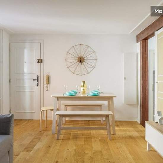 The apartment is ideally located in the heart of Strasbourg. Quiet in a typical Alsatian House (half-timbered and woodwork) to 3 th floor on 4. Very bright (with at least a large window per piece and not overlooked). Decorated with taste and very comfortably equipped, this charming 2 rooms with parquet, has a large bathroom with bath and shower, a kitchen furnished with all the necessary appliances, a living room and a room. The geographical location of this apartment will invite you to discover the streets of Strasbourg, France small or go ...