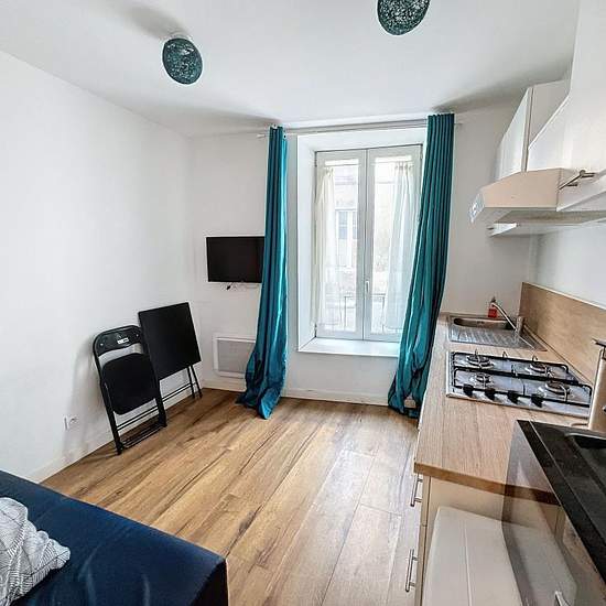 Studio entièrement meublé, en rez-de-chaussée. Situé au centre de tain l'hermitage, proximité gare, quais, commerces. Meublé et rénové ! Lieu et copropriété calme.