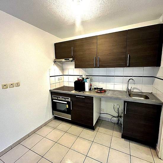 31530 THIL Lieudit Bois Daurade. Appartement 2 pièces de 46 m² en arrière de résidence au calme. Rez-de-Chaussée avec terrasse couverte, pièce de vie de 26.86 m², cuisine ouverte installée en juillet 2019 (meubles, plaques de cuisson, four de cuisson, hotte à recyclage), Placards dans l'entrée et dans la chambre, radiateurs à inertie et chauffe-eau intelligent, parking privé. Loyer 430.28 €, provision 70 € (comprenant la consommation individuelle d'eau, la copropriété et la taxe d'ordures ménagères avec régularisation annuelle), dépôt de gar...