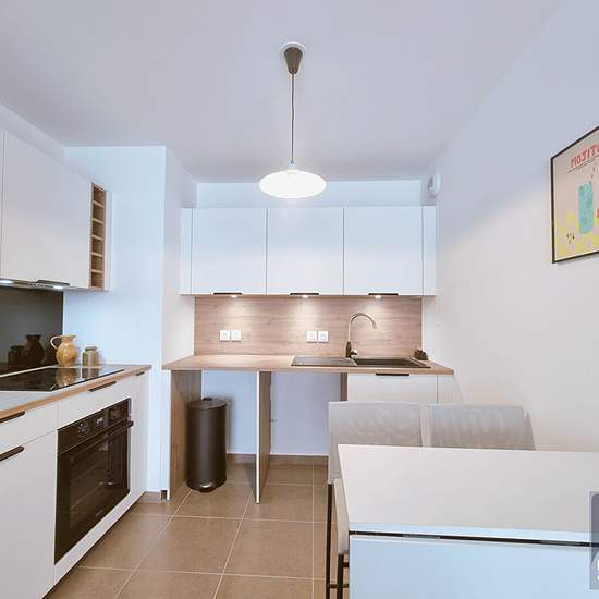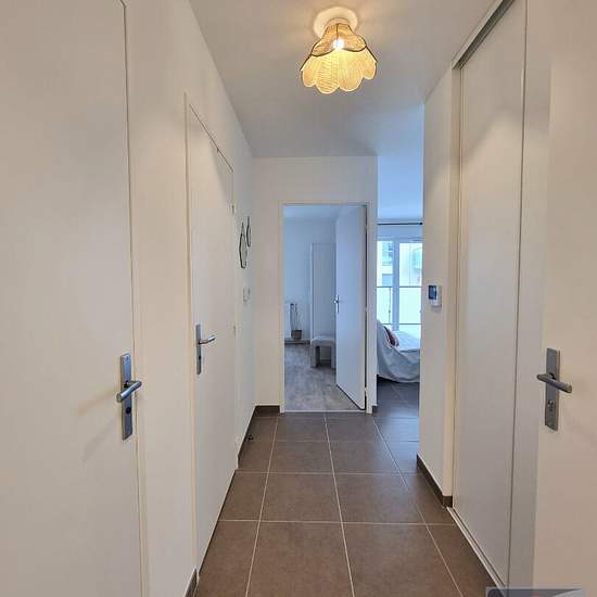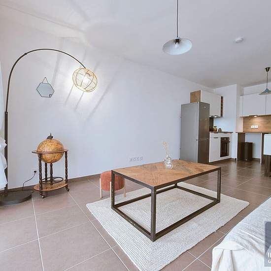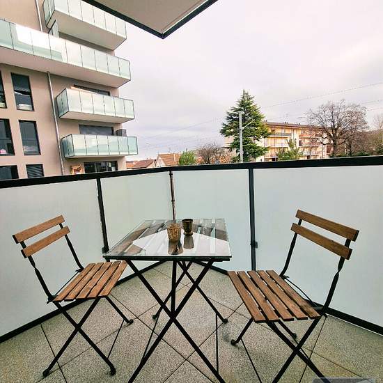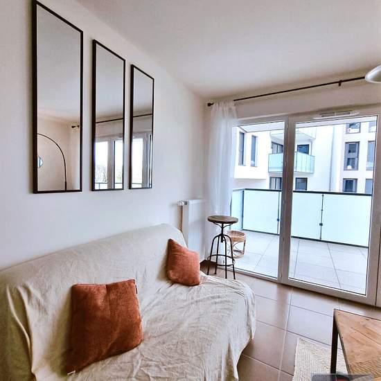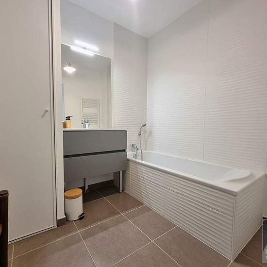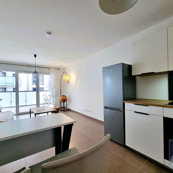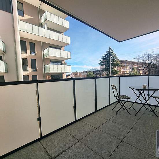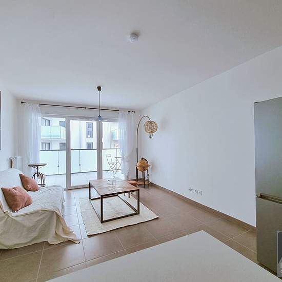 THONON EST Superbe T2 meublé et décoré avec goût au premier étage d'une résidence neuve. Très bien distribué, il se compose d'une entré avec placard aménagé, d'une jolie chambre meublée avec lit coffre et armoire, d'une cuisine de qualité fonctionnelle ouverte sur le séjour également meublé et décoré avec canapé convertible, d'une salle de bain avec baignoire et d'un WC séparé. Son large balcon donnant sur le jardin de la copropriété offre une jolie vue sur les toits. En annexe, une place de parking privative en sous-sol. Loyer mensuel : 104...