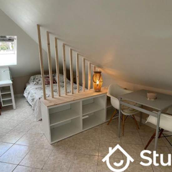 Très joli appartement sous les toits composé de deux colocations partageant une grande terrasse panoramique, un espace cuisine, d'une Salle de douche et buanderie. Chacun des deux espaces privés est composé de : - un coin lit avec un bureau, un petit espace dressing, un coin chaussures, des étagères - un coin salon avec un petit canapé, une table basse, deux poufs, une commode Updated on 17/12/2025 Mise à jour le 17/12/2025