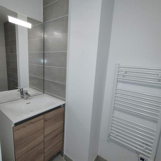 Idéalement située au coeur du quartier Croix-Daurade, rue Auguste Renoir, cette résidence neuve bénéficie d'un emplacement privilégié à proximité des commerces et des transports. Elle offre un cadre de vie agréable et pratique, parfait pour ceux qui recherchent confort et modernité. Située dans une résidence neuve, cet agréable appartement T2 se trouve au premier étage et offre un cadre moderne et confortable. Il se compose d'une entrée fonctionnelle, d'un séjour lumineux avec cuisine équipée comprenant meubles hauts et bas, plaque de cuisso...