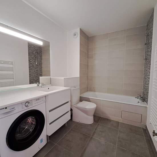 Dans une belle résidence neuve "orival" signée greencity, située au 20 route de revel 31400 toulouse, venez découvrir un grand t2 de 45.23 m² avec terrasse en bois de 11 m² et parking. Il se compose d'une entrée avec un cellier de rangement, d'un séjour avec cuisine meublée et équipée (plaques vitrocéramiques, hotte, réfrigérateur) la pièce de vie, spacieuse et très lumineuse donne sur une agréable terrasse de 11 m² d'une chambre avec grand placard et d'une salle de bain agrémentée de meuble sous vasque, miroir lumineux, baignoire, sèche ser...