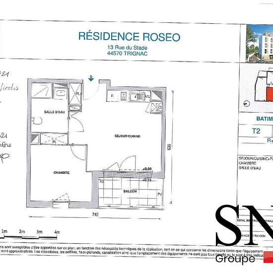 SNG IMMOBILIER // RESIDENCE ROSEO // DISPOSITIF PINEL DISPONIBLE LE 21/02/2026 A 300 mètres du centre-ville de Trignac, cette résidence propose à ses habitants une vie à proximité de toutes les commodités au quotidien. Contactez Monsieur BARON au 06x60x50x16x64 OU EMAIL pour visiter cet appartement T2 au R+3 de 40 m² avec un balcon de 5.60 m². Un séjour donnant sur une cuisine équipée d'un plan de travail, évier, plaque de cuisson, hotte, réfrigérateur, four, meubles haut et bas. Une chambre. Une salle d'eau avec WC. Deux parkings aériens. H...