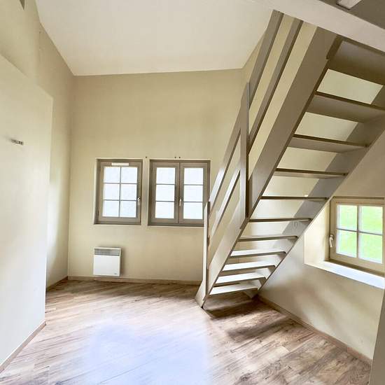 L'agence CKLG IMMOBILIER vous propose en location un appartement T2 duplex situé au 3ème étage et dernier étage d'un immeuble dans le quartier Historique que de la Ville de Tulle. Cet appartement de 51,07 m2 se compose comme suit : - Une entrée avec interphone - WC indépendant - Un salon/séjour avec cuisine ouverte (meuble évier, réfrigérateur, plaque électrique) - Une salle d'eau - Une chambre avec un espace bureau en haut de l'escalier Chauffage individuel électrique. DPE : consommation énergétique de classe D (190 kwh/m2/an), GES de class...