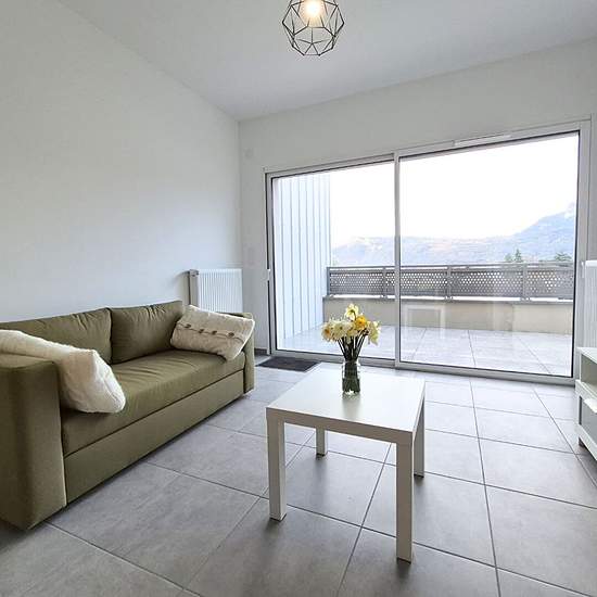 Tullins - résidence neuve iridis - 2 pieces meuble neuf + terrasse + garage - 46 m² - rue nelson mandela - disponible de suite dans une résidence à l'architecture novatrice, à proximité de la gare de tullins, des commerces, des écoles et à 30 min de grenoble, découvrez ce t2 lumineux aux prestations soignées loué entièrement meublé. Au 3ème étage avec ascenseur, cet appartement se compose d'une entrée équipée de placards, d'une pièce de vie accueillant le séjour ainsi qu'une cuisine neuve toute équipée, d'une chambre avec rangements, d'une s...
