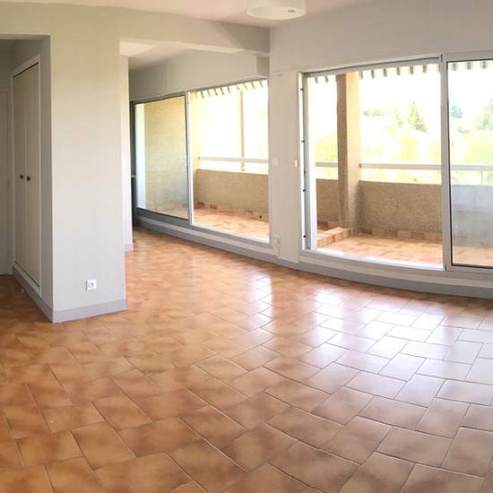 Appartement T2 de 43.82m2 habitables au 2ème étage d'une résidence calme , comprenant un séjour avec une cuisine ouverte de 22.14 m2 aménagée et équipée d'une hotte, une plaque de cuisson 4 feux vitrocéramique et de meubles de rangement, une chambre avec placard de rangement de 14.93 m2, une salle de bain avec wc de .4.76 m2, une entrée avec placard de 1.99m2 , une terrasse de 17.91 m2, ainsi qu'un local pour vélo. Isolation : double vitrage Convecteur électrique et climatisation. Disponible à partir du 20/01/2026 Contactez l'Agence Demeures...