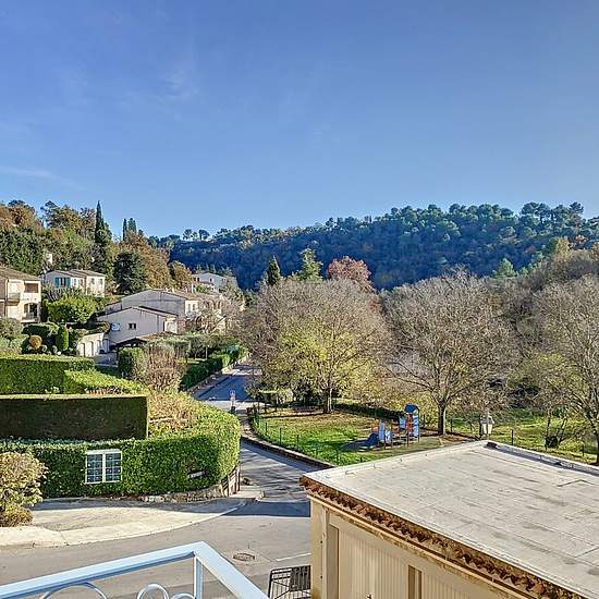 EXCLUSIVITÉ - Proche SOPHIA-ANTIPOLIS au coeur du Village de VALBONNE, bel appartement T2 meublé au 1er étage, d'une surface de 47,5 m2 plus un petit balcon, très lumineux et exposition Sud, offrant une vue dégagée sur l'Abbaye romane du XIIIe siècle de Valbonne et les collines. Cet appartement meublé comprend un séjour avec cuisine ouverte entièrement équipée, une chambre avec placard, une salle de bains et un wc indépendant. Équipements : Composé d'une chambre indépendante avec un lit double, d'une cuisine Américaine entièrement équipée (f...