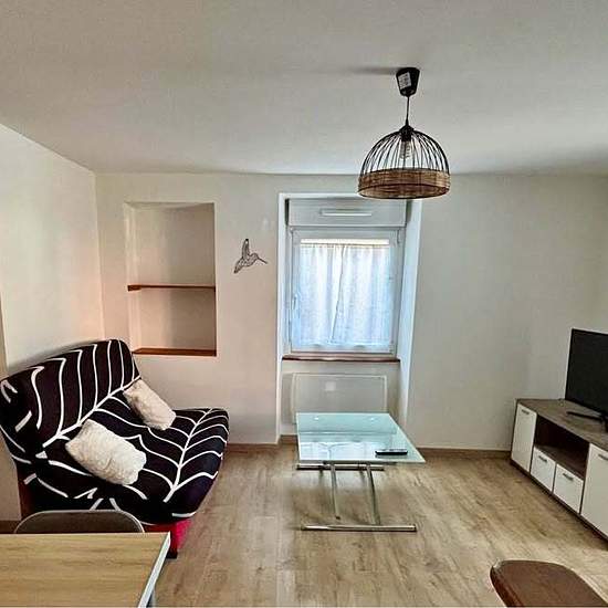 Loue F2 meublé de 32 m2 refait quasiment à neuf, 460€ + 30€ de charges (poubelles + électricité des communs + ménage des communs + eau selon consommation). Caution 800€. L’appartement est situé au rez-de chaussé d’un petit immeuble de 5 appartements. Très bien situé en plein centre de Valdoie, proche des arrêts de bus, banque, pizzéria, mairie, boulangerie, pharmacie, cabinet médical, coiffeur, tout est à moins de 2 minutes à pied. - Pièce principale équipée d’une cuisine (plaque deux gaz (bouteille), hotte, frigo avec congélateur, micro-ond...