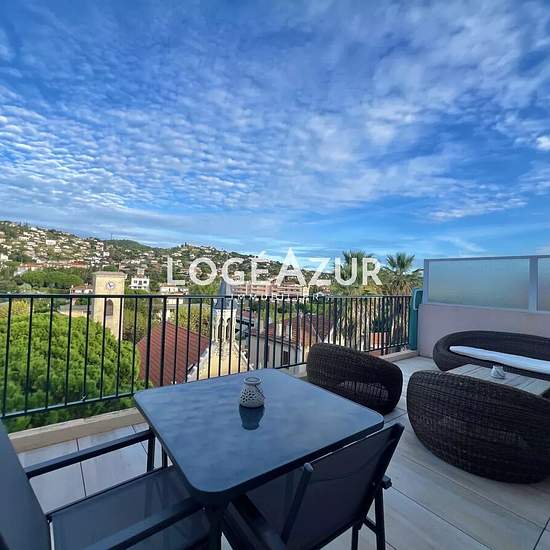 DISPONIBLE de septembre 2025 à juin 2026 Situé en plein centre ville de GOLFE JUAN - VALLAURIS, appartement composé d'une entrée, séjour avec accès grande terrasse, cuisine équipée, chambre, salle de douche et toilettes séparés. Dernier étage, climatisation, Wifi. Un parking en sous-sol compléte ce bien.