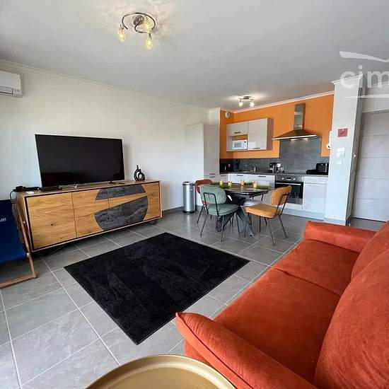 Appartement lumineux à 400m de la mer ! Situé au 1er étage d’une résidence paisible avec ascenseur, cet agréable appartement vous offre tout le confort nécessaire pour un séjour détente. Idéal pour 4 personnes, il se compose d’un séjour avec canapé convertible (140) et cuisine ouverte entièrement équipée, le tout donnant sur une agréable terrasse avec mobilier de jardin pour profiter des beaux jours. La chambre dispose d’un lit double (140 cm). Vous bénéficierez également d’une salle de douche moderne, d’un WC séparé, ainsi que d’une buander...
