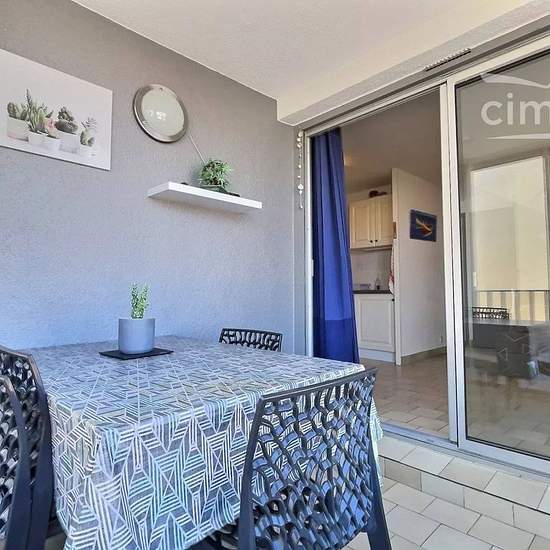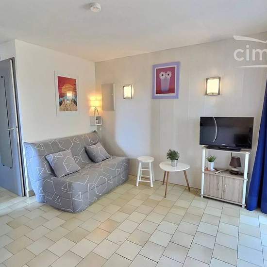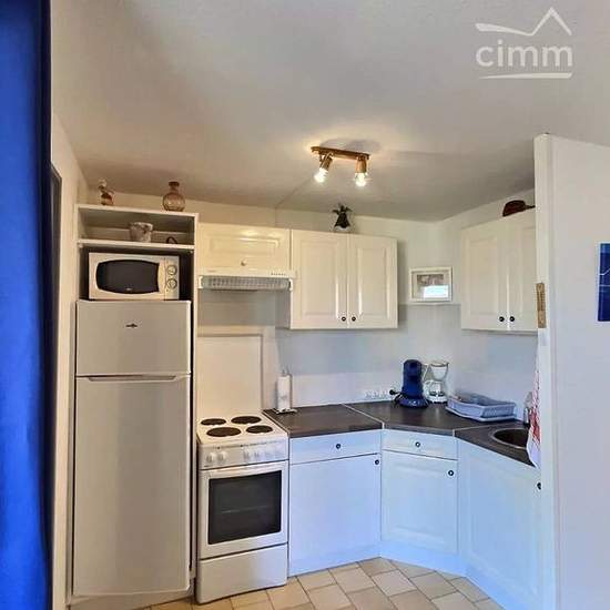 LOCATION SAISONNIERE: Profitez de vos vacances dans un appartement de 21m2 à 150m de la plage. Cet appartement idéal pour un couple avec 2 enfants se trouve au deuxième étage d’une résidence sécurisée avec piscine, le logement dispose d’une place de parking. Il est composé comme suit : Une chambre cabine avec lit superposé (2x90), d’une salle d’eau, et toilettes indépendant et d’un séjour avec canapé lit double (140) ouvert sur une cuisine aménagé disposant d’un four, micro-ondes, et de plaque induction le tout ouvert sur une véranda lumineu...