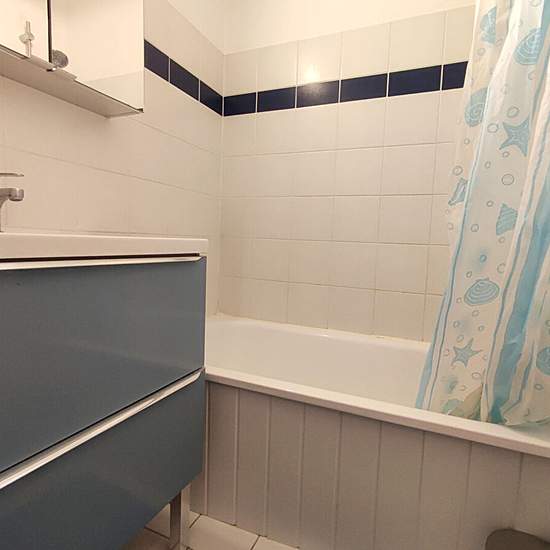 VAUX SUR MER - Dans résidence de bord de mer avec ascenseur et accès piscine, à 100 m de la plage, du casino et des commerces de ROYAN Pontaillac, Appartement T2 meublé de 25m2, 2 pièces comprenant : entrée, salle de bain, wc séparé, coin cuisine (lave linge, mini-four, micro-onde, frigo-congel), séjour/salon avec TV + canapé clic clac (2 pers) ouvrant sur terrasse (store, mobilier de terrasse), une chambre (avec lit 140, commode et petite penderie). Piscine collective ouverte Juillet et Aout. Loyer brut : 550,00 euros Charges mensuelles et ...
