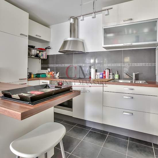 VERSAILLES SAINT LOUIS APPARTEMENT TERRASSE BOX Au coeur du quartier Saint Louis Loué non meublé Proximité commerces et gares Grand 2 pièces de charme salon avec cuisine américaine, buanderie chambre salle de bains et wc séparés en très bon état Terrasse privative Parking box en sous sol
