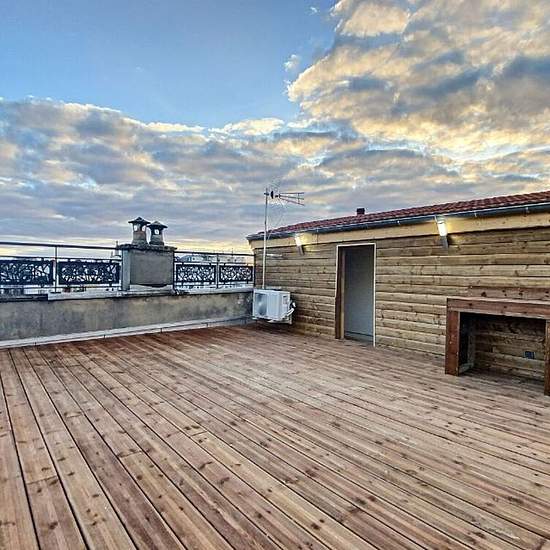 Appartement sur les toits !. Superbe F2 en centre ville de Vichy. Terrasse de 30m²... Entièrement meublé, prestations de qualités, rangements. Entrée avec rangements, cuisine équipée et aménagée, séjour offrant un coin repas et coin salon, Télévision, CLIMATISATION, chambre avec un coin bureau et des rangements. A l'étage un coin buanderie et accès à la terrasse sans vis à vis et surplombant la ville. A venir voir sans tarder