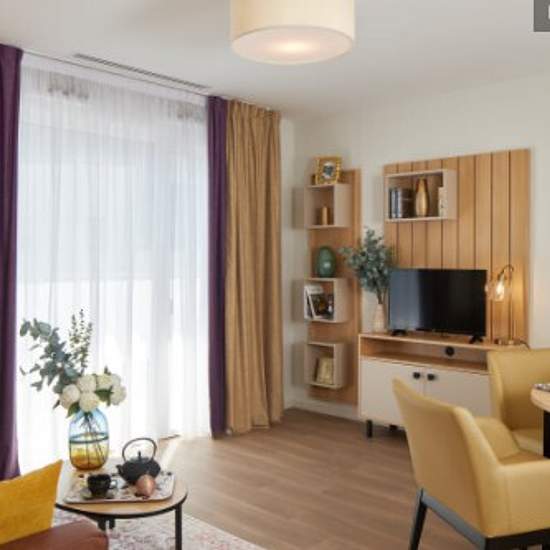 Confortablement installé dans votre appartement, vous vous sentez bien chez vous. Vous êtes parfaitement autonome, tout en étant encadré si vous le désirez. Vous apprécierez les prestations de qualité de votre nouveau lieu de vie (activités quotidiennes, services à la personne) et son cadre bienveillant, garanti par la présence d'une équipe qualifiée active jour et nuit. Une laverie est présente dans la résidence.