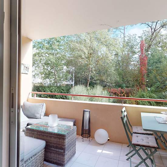 Dans une résidence fermée au calme, tout proche du Parc de Vaugrenier, appartement meublé traversant 2 pièces joliment décoré. En parfait état, il se compose de la façon suivante : entrée, chambre, salon avec cuisine équipée ouverte, salle de douche avec toilettes. La terrasse fait environ 10 m², très bien exposée sud/est, avec vue sur les arbres. Place de stationnement couverte privée, climatisation réversible. Disponible le 1 er décembre. ** Loyer 885,87€/mois dont 65€ de charges mensuelles. Régularisation annuelle. Honoraires charge locat...