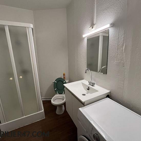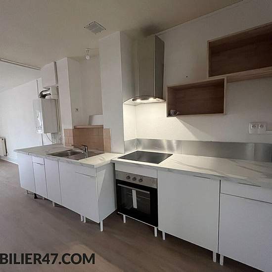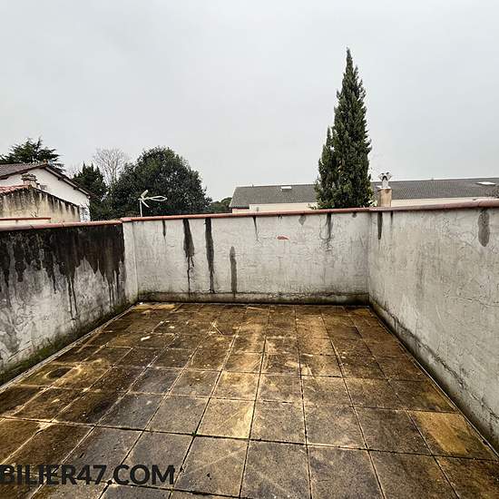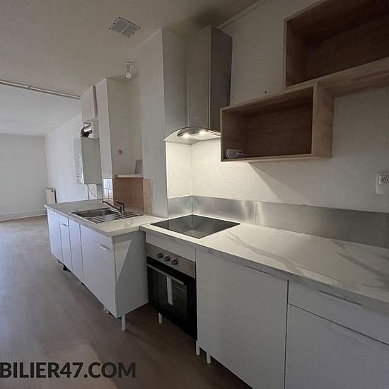 Exclusivité Castelmoron Immo. A Villeneuve sur Lot, au premier étage d'un petit collectif de 4 logements situé boulevard du 14 Juillet, appartement de type 2 d'une surface habitable de 54,71m². L'appartement dispose d'un coin jour de 23,90m² équipé d'une cuisine aménagée d'une plaque de cuisson, d'une hotte et d'un four , d'une grande chambre de 19m² et d'une salle d'eau avec WC équipée d'un lave linge. Terrasse privative de 15 m² sans vis à vis, double vitrage, chauffage gaz de ville. Entretien des parties communes réalisé par l'ensemble de...
