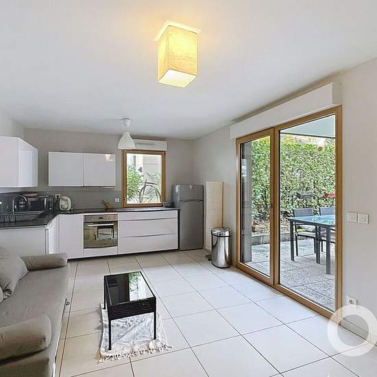 Appartement T2 meublé à louer au 5 Rue Docteur Dolard 69100 Villeurbanne. Au RDC de cette résidence de 2014, à louer ce joli T2 meublé de 45,80 m² avec une terrasse couverte de 7m² et un jardin privatif de 40 m² (+ un garage fermé en sous-sol). L'appartement se compose d'une entrée avec placards et WC, d'un salon ouvrant sur une cuisine aménagée et équipée, d'une baie vitrée ouvrant sur la terrasse et le jardin, d'une chambre avec placards et bureau et d'une salle de bains équipée et aménagée. Libre de suite. Loyer appartement : 706 € / mois...