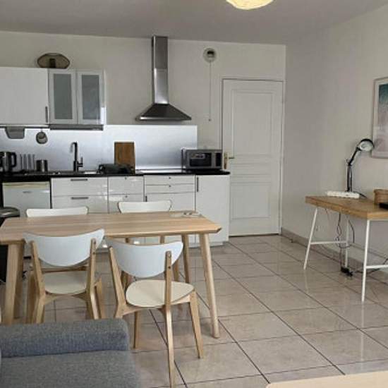 Réf : 8MILLON Disponible le 01/01/2026 Immobilière DABRETEAU vous propose à la location, un appartement de type 2 meublé avec goût, d'une superficie totale de 43.89 m² en rez-de-jardin. L'appartement se compose d'un hall d'entrée donnant sur un grand placard coulissant de rangement. Un salon spacieux et lumineux donne sur une cuisine ouverte tout équipée et fonctionnelle. Une terrasse de 7.77 m² sans vis-à-vis est accessible par le salon ainsi que par la chambre. La chambre dispose d'un lit deux place et d'un dressing. La salle de bains cont...