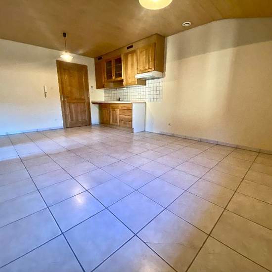 Appartement F2. Appartement F2 au premier étage d'un petit immeuble en campagne. Il se compose d'une pièce de vie avec cuisine meublée, une chambre avec placard, salle de douche avec WC. Libre de suite.