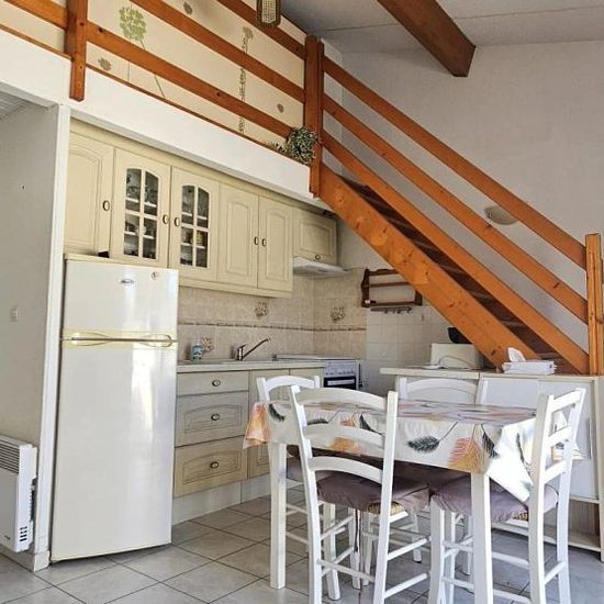 Aigues Mortes - Maison Mitoyenne - 33.62 m² AIGUES-MORTES - Au coeur d'un environnement champêtre et privilégié, maisonnette meublée comprenant au rez-de-chaussée : un séjour avec coin cuisine, une chambre, une salle d'eau et un WC; au R+1 : une grande mezzanine pouvant faire office d'une seconde chambre, d'un bureau ou encore, d'une salle de jeux. Après votre ballade à vélos, vous pourrez le stocker dans l'abri jouxtant la maison et profiter du calme environnant dans votre jardin. Place de parking privative disponible dès maintenant. Hono...