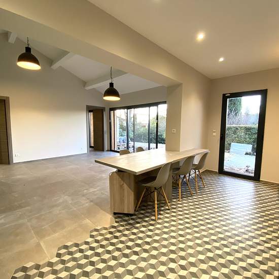 MAISON INDIVIDUELLE TYPE 3 CHEMIN DE LA RAPINE / RTE DE CELONY / AIX-EN-PROVENCE 13100. Dans un environement calme avec vue dégagée, maison contemporaine MEUBLEE de plain-pied, de type 3 et d'une surface habitable d'environ 75m2 avec TERRASSE et JARDIN PRIVATIFS. Le bien se compose d'un hall d'entrée, séjour / cuisine US, meublée et entièrement équipée, espace buanderie, 2 chambres, salle d'eau Italienne et wc séparé. Belles prestations (double vitrage, volets motorisés et climatisation réversible ). PISCINE, JACCUZZI ET JARDIN A PARTAGER AV...