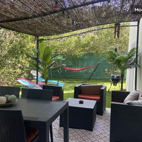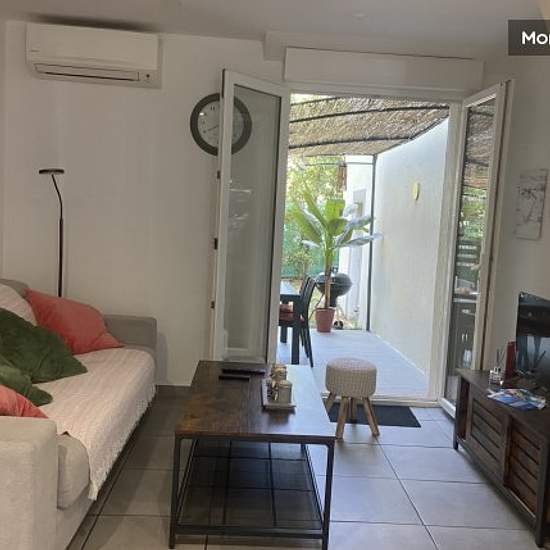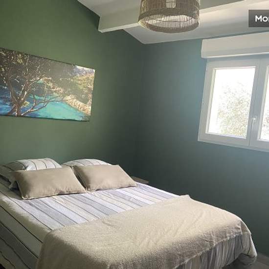Ideal for professionals on the move Pretty new house (2019) independent of 50 M2.in an exotic and Provencal, an exceptional green setting and in absolute calm, beautiful heated pool in the back season with fountain and colored lights at night: - Bedroom with plenty of storage space, air-conditioned with a double bed on the first floor - Italian shower on the first floor with washbasin and WC - Living room with sofa, dining room which opens directly onto a terrace and a fully private garden with barbecue, hammock and deckchair, table and chai...
