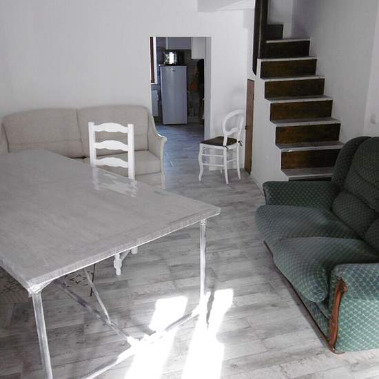Maison meublée, 2 chambres, séjour avec cheminée insert, cuisine équipée, terrasse, jardin attenant.