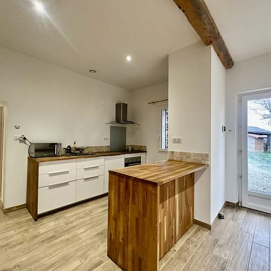 Venez découvrir cette maison T3 meublée située à Auradé, à seulement 5 minutes de L'Isle-Jourdain et de l'accès à la rocade. La maison est très bien entretenue et dispose d'un grand salon de 35 m2 avec cuisine ouverte et équipée, de deux chambres confortables et d'une salle de douche moderne. Les matériaux sont récents et en excellent état. À l'extérieur, un grand jardin de 750m2 non clôturé et un espace de rangement complètent ce bien. Disponible immédiatement.