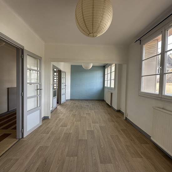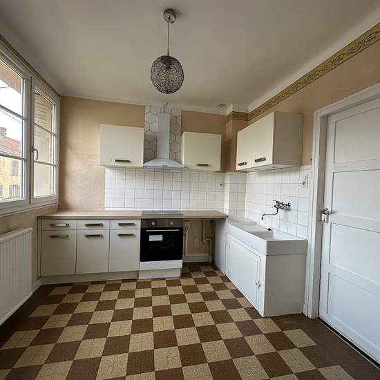 Square Habitat vous propose à la locataire, cette charmante maison de 4 pièces de 79,49 m2 se composant : d'une grande entrée, d'un salon/séjour, d'une cuisine équipée, de 2 chambres avec cheminée d'ornement, 1 salle de bains, d'un WC séparé ainsi qu'un débarras. La maison est sur un sous-sol total avec emplacement buanderie. Jardins et emplacement pour véhicules. Les charges comprennent les ordures ménagères et l'entretien de la chaudière