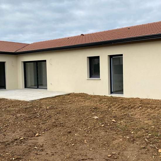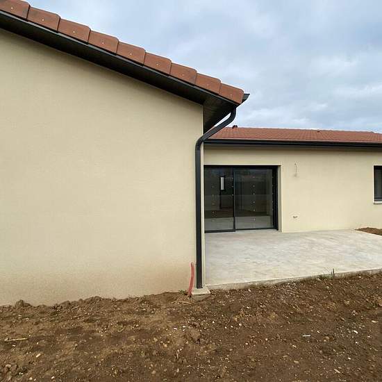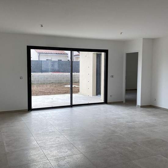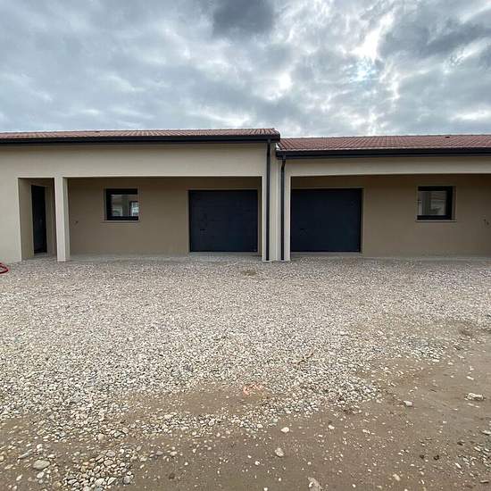 Maison 4 chambres mitoyenne de 104 m² env. Bourg de péage Maison mitoyenne de plain pied 104 m² env comprenant 4 chambres, 2 salles de bains, cuisine semi équipée ouverte sur salon. Terrain clos / garage.