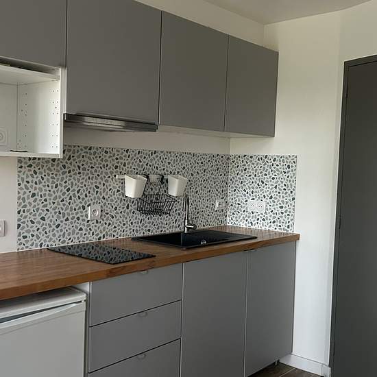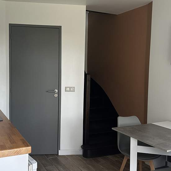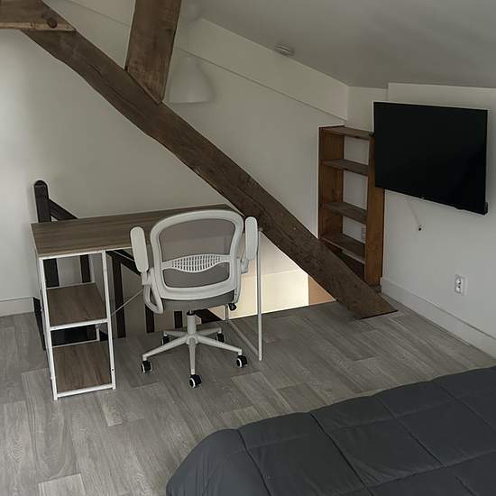 Maison meublée d'environ 20 m2, idéale pour une personne seule, située dans un environnement calme. Rez-de-chaussée : Cuisine ouverte équipée (plaque de cuisson, hotte) Espace salle à manger avec table et chaises Salle d'eau avec WC et lave-mains À l'étage : Chambre avec rangements et petite penderie Bureau Lit et télévision Extérieurs et annexes : Jardin d'environ 400 m2 (avec une petite partie clôturée) Hangar Buanderie équipée (évier, machine à laver, rangements)