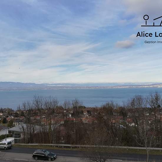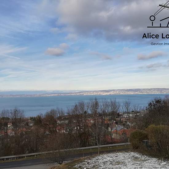 CHARMANT CHALET T3BIS - VUE PANORAMIQUE Sur les hauteurs d'Evian, charmant chalet T3bis en duplex bénéficiant d'une vue panoramique sur le lac, de 73m2 et se composant: Au 1er niveau: une entrée une cuisine ouverte sur le séjour un bureau un WC A l'étage: une dégagement deux grandes chambres avec placards une salle de bains avec douche et baignoire un WC En complément, ce bien dispose d'une belle terrasse exposée plein sud, d'un balcon vue lac, d'un sous sol complet et d'un jardin privatif. Loyer 1362?uros par mois (pas de charges). Disponib...