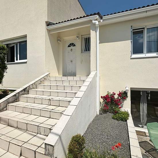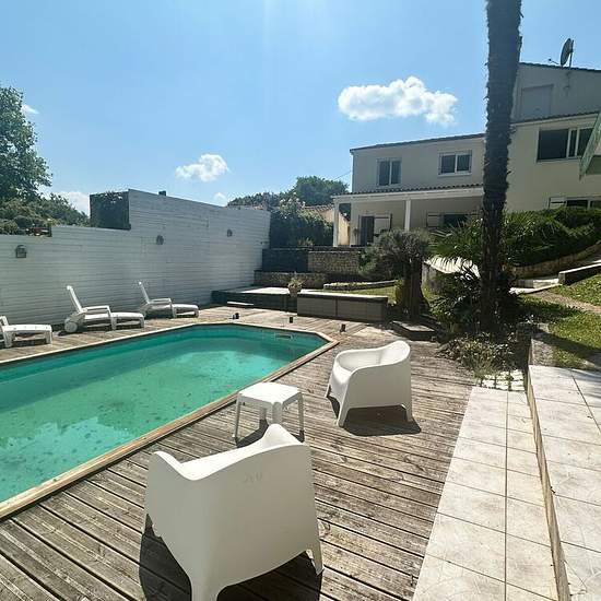 Maison À Louer. Charmante maison entièrement meublée, située aux portes de la ville de SAINTES (côté gare) comprenant : une pièce de vie lumineuse ouverte sur une cuisine aménagée et équipée, une entrée avec placards, un WC, une salle d'eau et 2 chambres. Au sous-sol : une buanderie, un couloir desservant 2 chambres supplémentaires, une salle de bains + douche, un WC. Une terrasse à l'avant de la maison et une terrasse couverte sur l'arrière offrant une jolie vue sur le jardin arboré avec une piscine hors sol. Places de stationnement. Dispo...