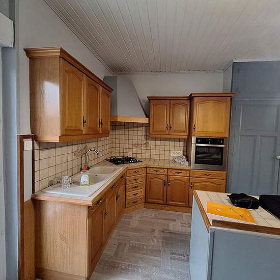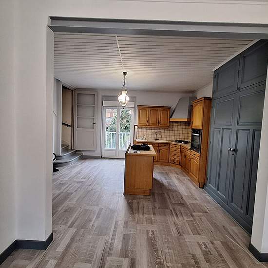 Disponible de suite. Maison de ville entièrement rénovée. Maison T3 mitoyenne de 84m2 avec 244m2 de jardin, composée de : Au rez-de-chaussée : cuisine lumineuse ouverte sur le salon, équipée (four, plaque de cuisson gaz, lave vaisselle), salle d'eau et un WC séparé. A l'étage : une salle d'eau et WC, deux grandes chambres dont une avec placard. Au sous -sol : espace buanderie, large espace de rangement, double accès rue et jardin, chaudière gaz récente. Sur l'arrière : beau jardin avec remise, et une grande terrasse.