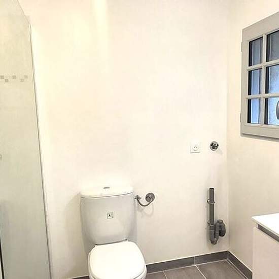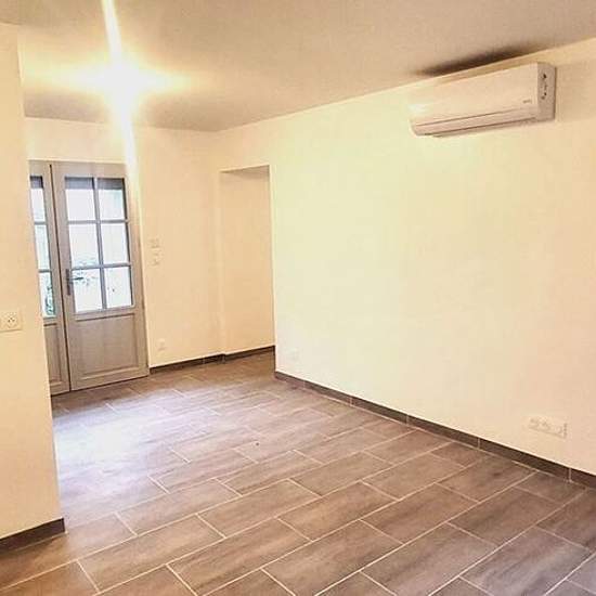 Maison plain-pied proche des commodités de 43 m² comprenant un séjour / cuisine, un salon, une chambre, salle d'eau avec douche italienne jardin attenant chauffage par pompe à chaleur .