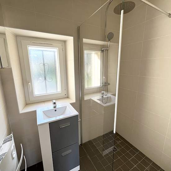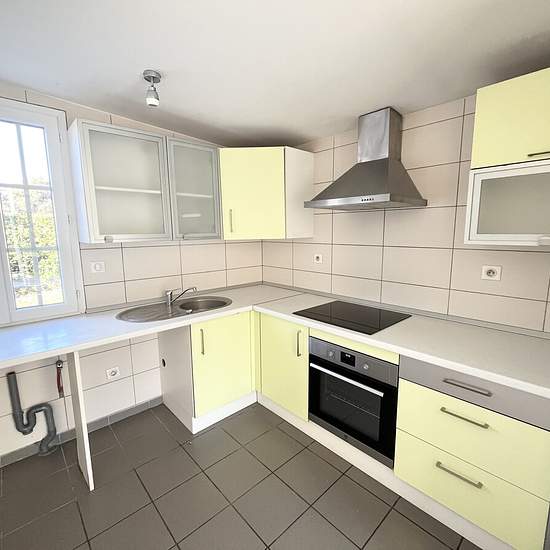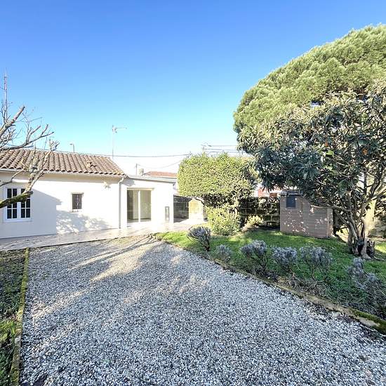 GRADIGNAN CENTRE MAISON 3 PIÈCES 53,50 M² JARDIN TERRASSE À proximité immédiate du centre-ville, maison 3 pièces de plain-pied de 53,50 m² se composant d'un double séjour avec cuisine ouverte, de 2 chambres, de 2 salles d'eau et d'un sanitaire séparé. Cuisine aménagée et équipée avec plaque induction 3 feux, hotte aspirante (évacuation extérieure), four pyrolyse ; emplacements pour lave-vaisselle, lave-linge et réfrigérateur. 2 salles d'eau avec meuble vasque, grande douche 80*130 avec paroi vitrée et sèche serviettes avec booster soufflant....