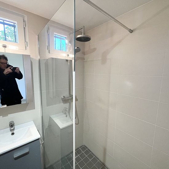 GRADIGNAN CENTRE MAISON 3 PIÈCES 53,50 M² JARDIN TERRASSE À proximité immédiate du centre-ville, maison 3 pièces de plain-pied de 53,50 m² se composant d'un double séjour avec cuisine ouverte, de 2 chambres, de 2 salles d'eau et d'un sanitaire séparé. Cuisine aménagée et équipée avec plaque induction 3 feux, hotte aspirante (évacuation extérieure), four pyrolyse ; emplacements pour lave-vaisselle, lave-linge et réfrigérateur. 2 salles d'eau avec meuble vasque, grande douche 80*130 avec paroi vitrée et sèche serviettes avec booster soufflant....